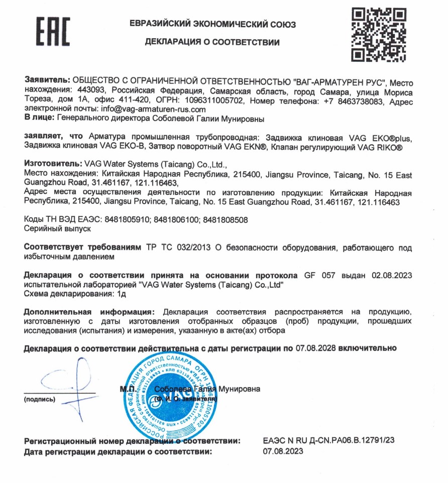 VAG - трубопроводная арматура для водоснабжения, водоотведения и канализации купить в Екатеринбурге