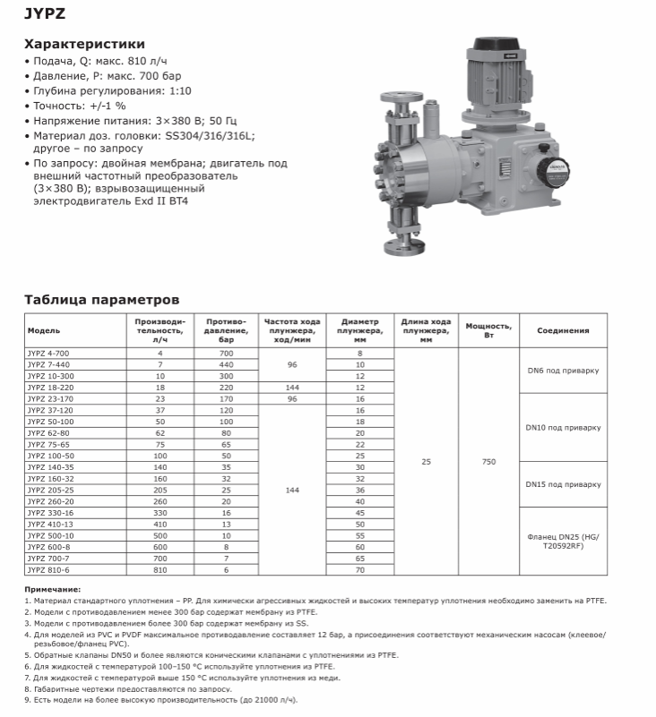 Гидромеханические мембранные дозировочные насосы серии JYP оснащены асинхронными электродвигателями. Насосы обладают высокой прочностью и надёжностью.